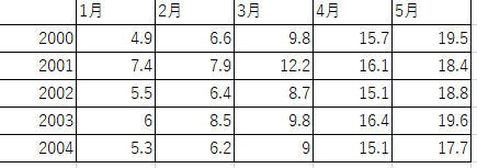 実際途中からデータを取る感覚が変わっていることに注意する必要があります。