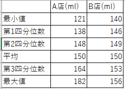 この表から、最小値が294kcal、最大値が698kcalということがわかります。